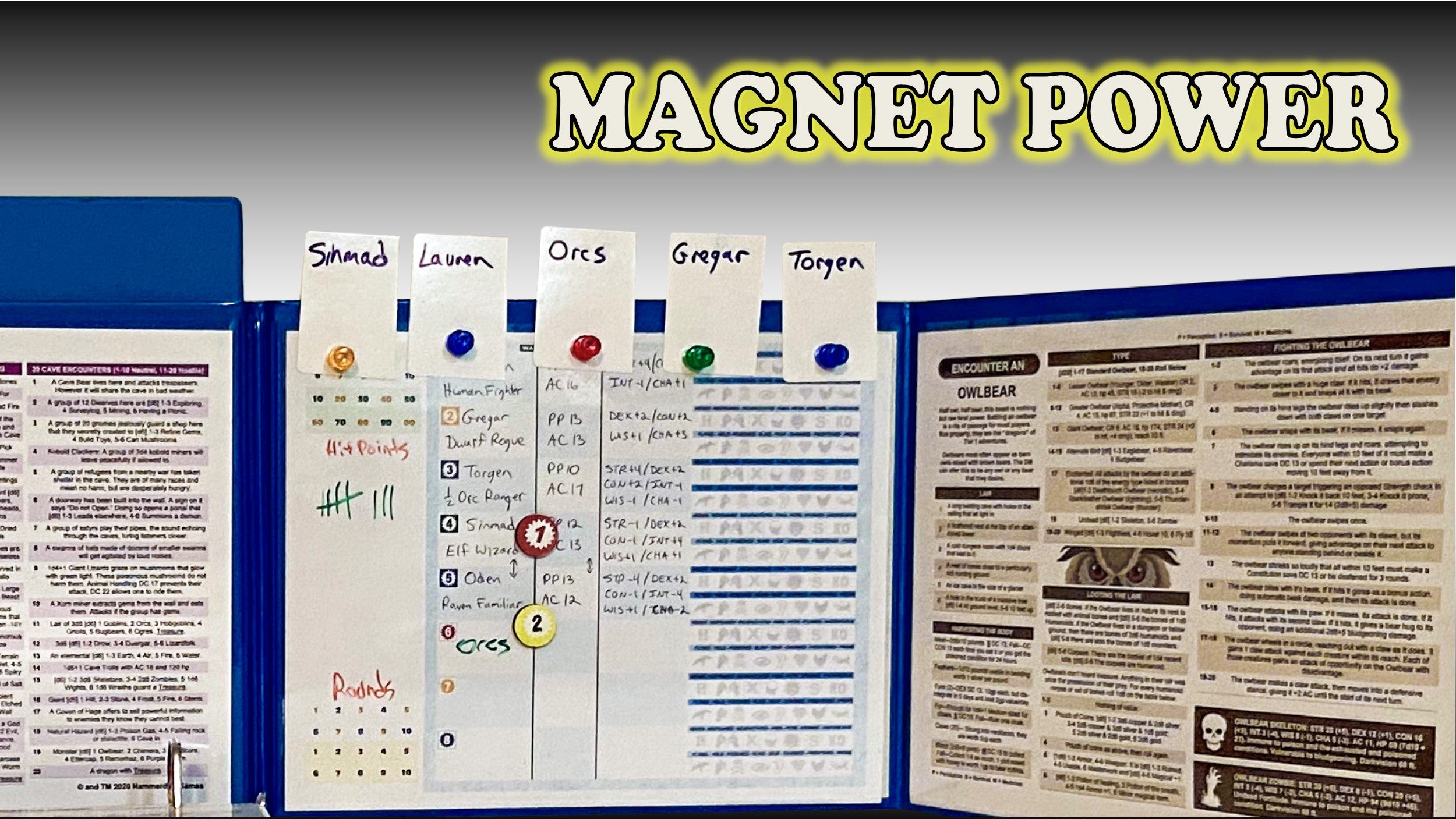 Optional magnet pack comes with numbered magnets and cards to track initiative and other conditions