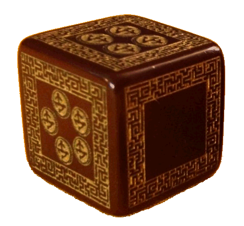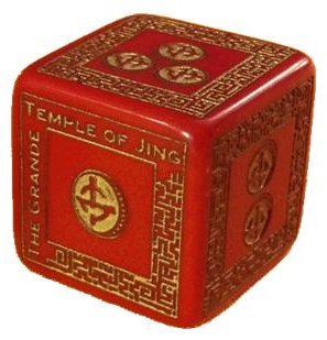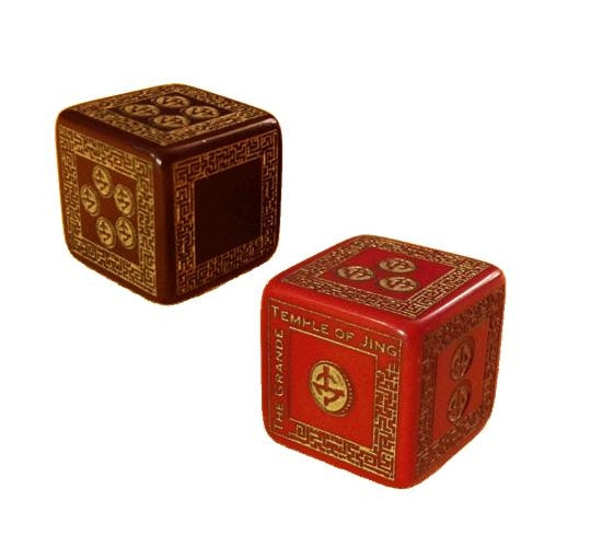 These special dice were created by Q-Workshop specifically for the Grande Temple of Jing! Modified d6es, each returns a result of 0-5 - and helps DM and GMs judge weird circumstances in the temple. Rules in the book explain how to use this die but you don't need them to play. You need them to enhance your dice collection!