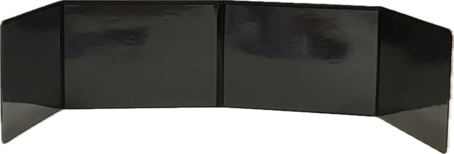 The World's Greatest Screen is the only GM screen you will ever need. Customize it by putting art or player friendly info on the outside. Put charts, tables, and other good stuff on the side that only YOU see. Write on it with wet or dry erase markers.