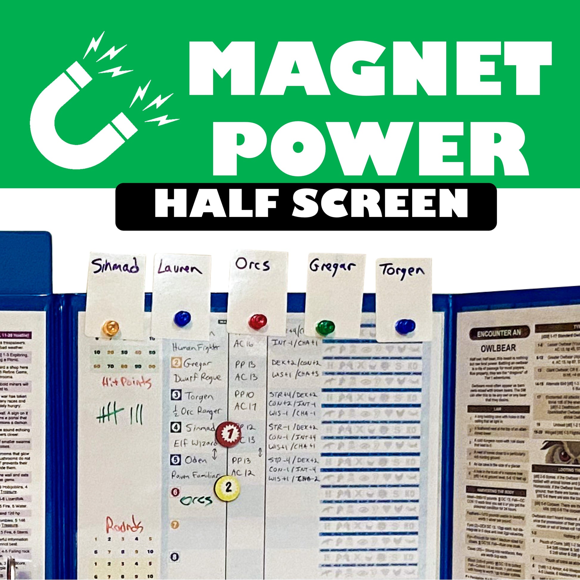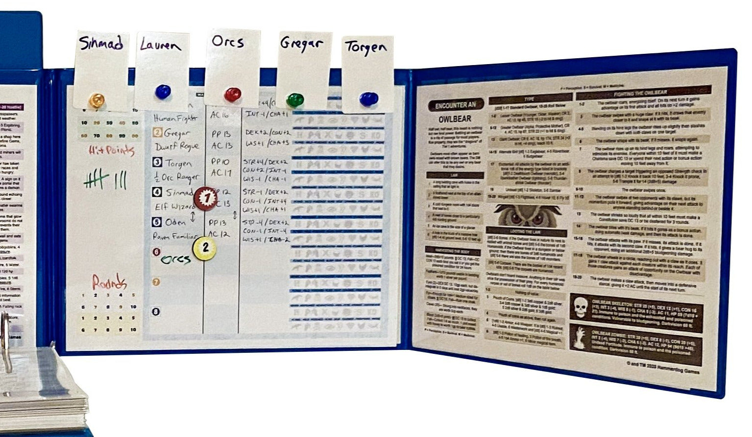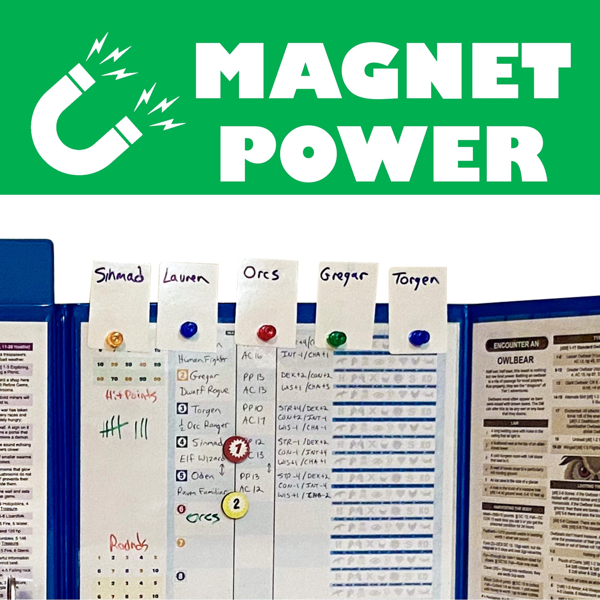 Note: Each insert has an adhesive side, so that you can create your own custom inserts, such as a custom party or combat tracker, and stick them to one of these inserts.