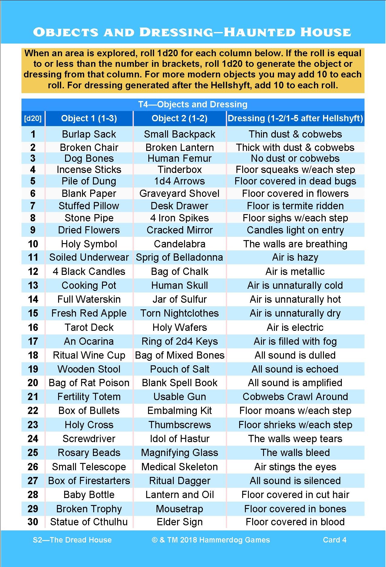 Note: You do not need these inserts to run or enjoy the Dread House.